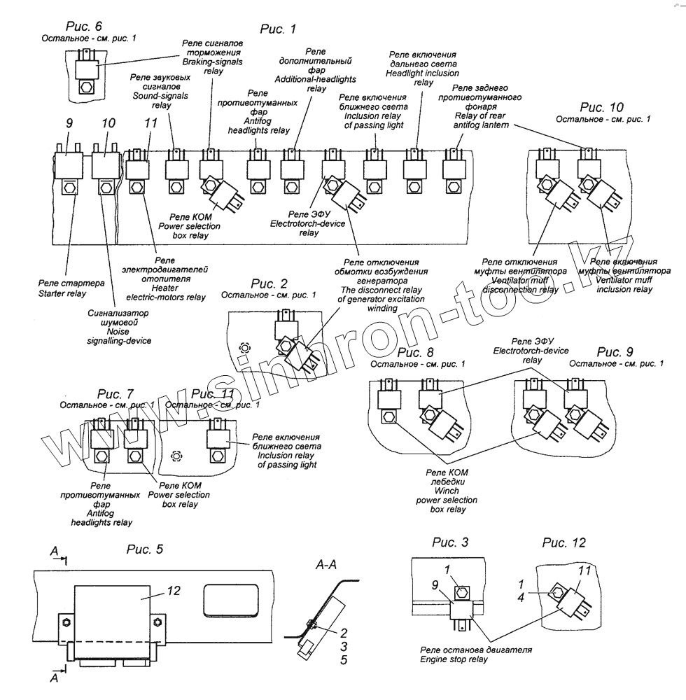 Каталог запасных частей к технике: Камский автозавод 63501 (8х8). 43118-3747001-24 Установка реле