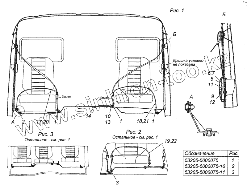 Каталог запасных частей к технике: Камский автозавод 63501 (8х8). 53205-5000075 Установка ремней безопасности
