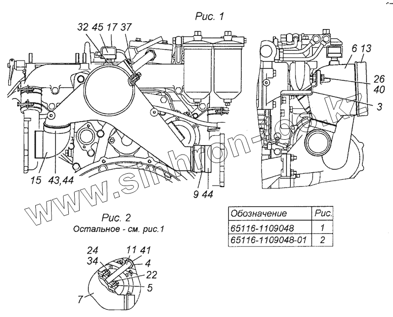 Каталог запасных частей к технике: Камский автозавод 63501 (8х8). 65116-1109048 Установка тройника