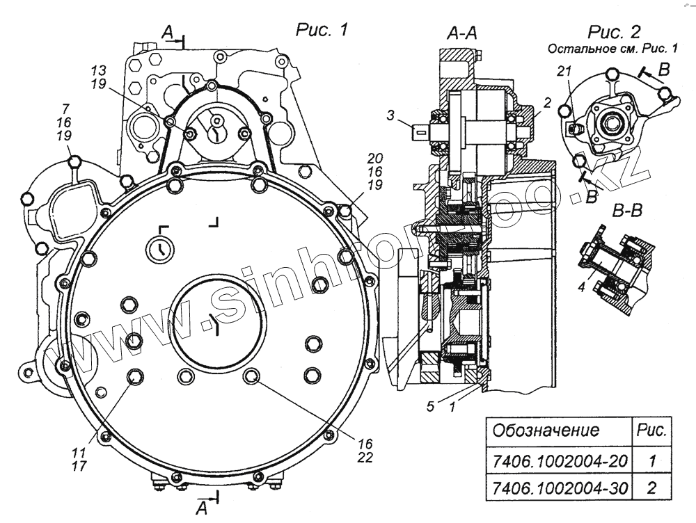 Каталог запасных частей к технике: Камский автозавод 63501 (8х8). 7406.1002004-20 Установка картера маховика