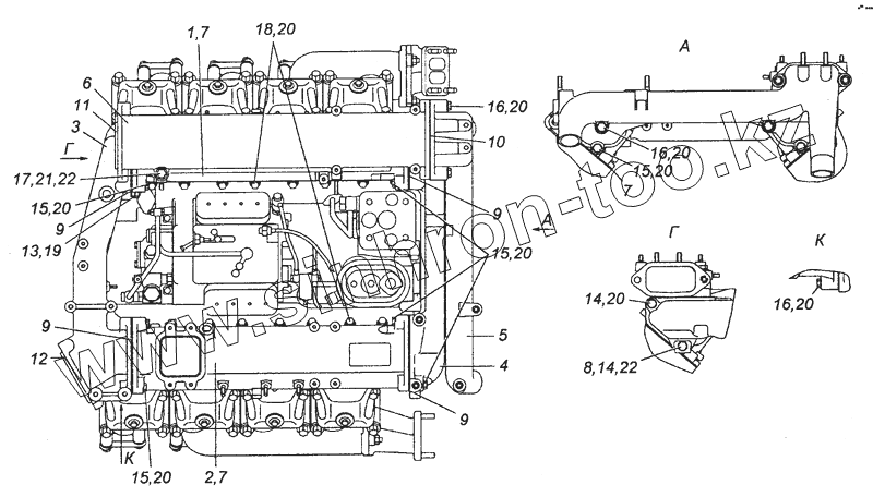Каталог запасных частей к технике: Камский автозавод 63501 (8х8). 7406.1115000-30 Установка системы впуска