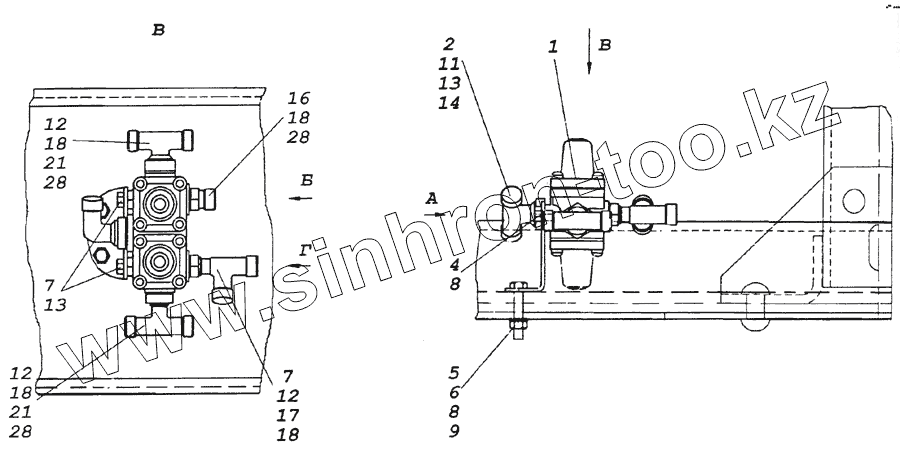 Каталог запасных частей к технике: Камский автозавод 6350 (8х8). 4310-3500015 Установка четырехконтурного защитного клапана