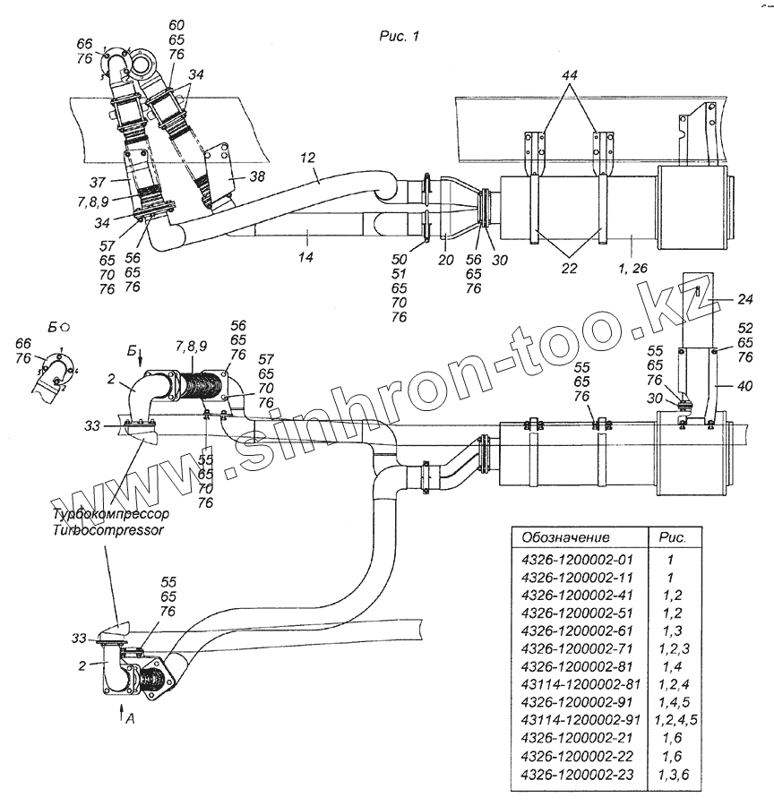 Каталог запасных частей к технике: Камский автозавод 6350 (8х8). 4326-1200002-01 Установка системы выпуска