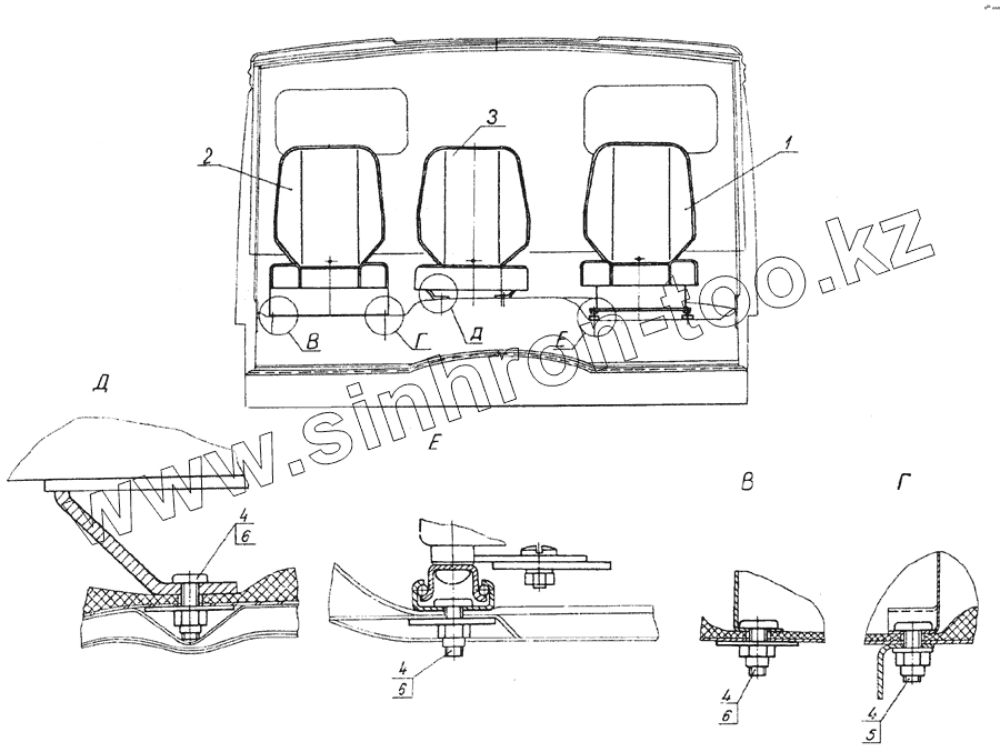 Каталог запасных частей к технике: Камский автозавод 6350 (8х8). 53205-5000120-10 Установка сидений
