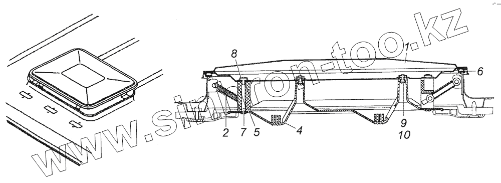 Каталог запасных частей к технике: Камский автозавод 6350 (8х8). 53205-5713008 Установка вентиляционного люка