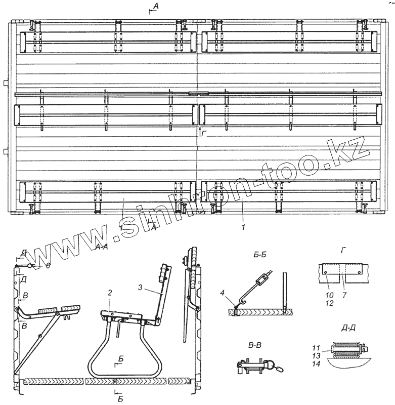 Каталог запасных частей к технике: Камский автозавод 6350 (8х8). 5350-8506008-70 Установка скамеек