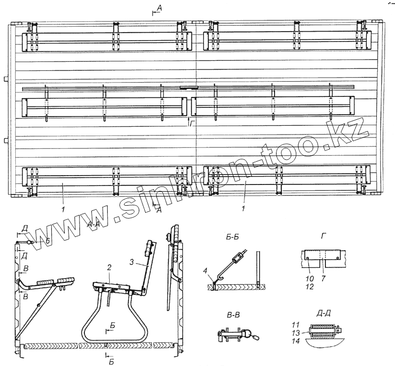 Каталог запасных частей к технике: Камский автозавод 6350 (8х8). 5350-8506008-75 Установка скамеек
