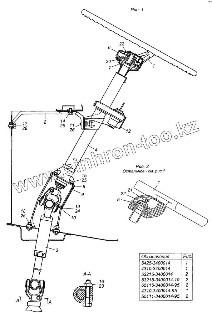 Каталог запасных частей к технике: Камский автозавод 6350 (8х8). 5425-3400014 Установка колонки рулевого управления