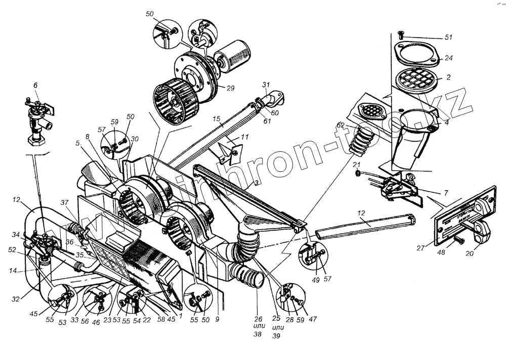 Каталог запасных частей к технике: Камский автозавод 6350 (8х8). 6520-8100005 Установка системы отопления кабины