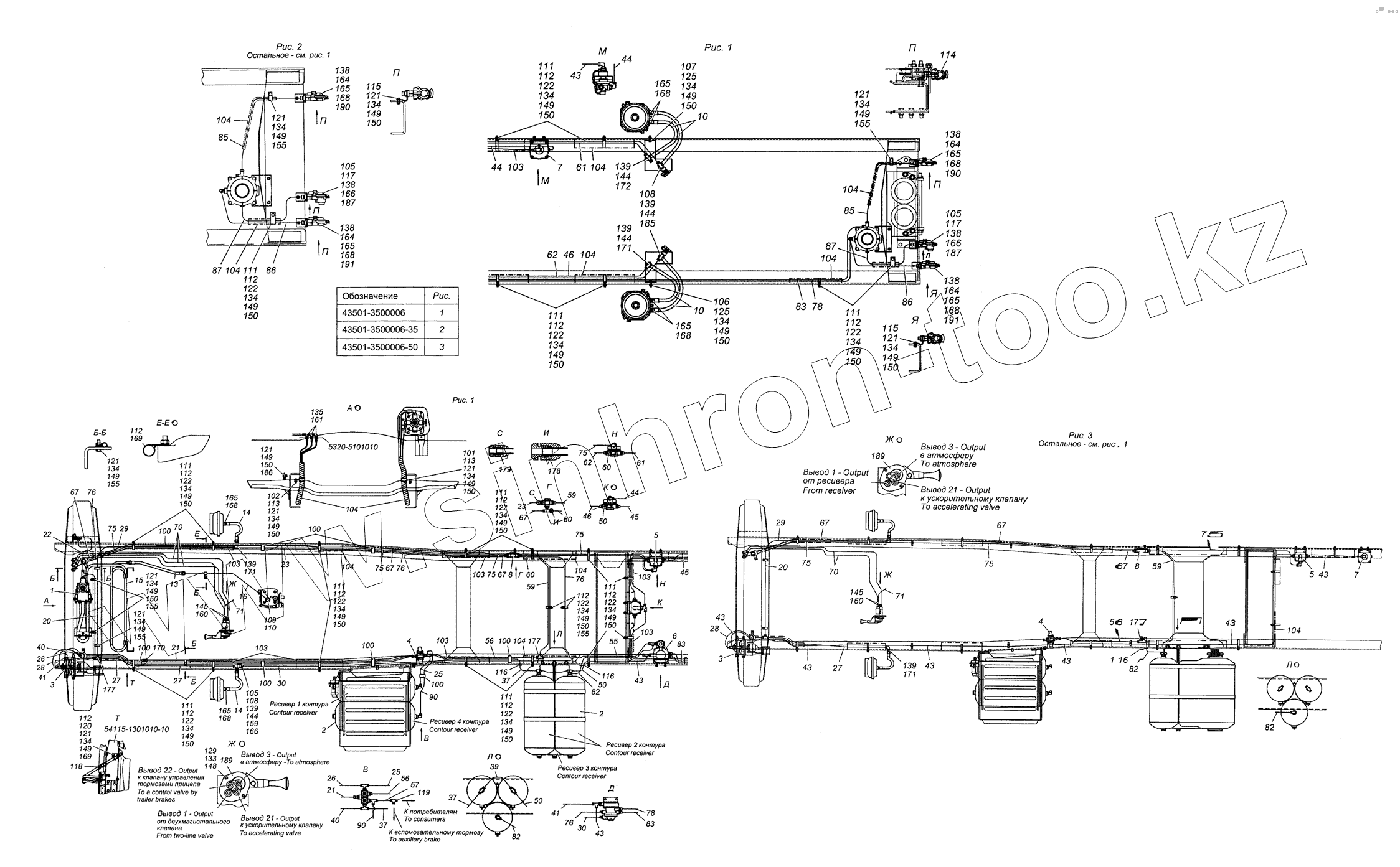 Каталог запасных частей к технике: Камский автозавод 6450 (8х8). 43501-3500006 Установка пневмотормозов