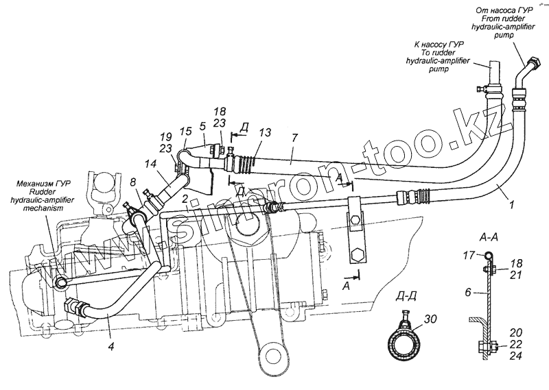 Каталог запасных частей к технике: Камский автозавод 6450 (8х8). 53205-3400018-10 Установка трубопроводов