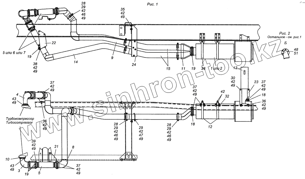 Каталог запасных частей к технике: Камский автозавод 6450 (8х8). 6350-1200001-10 Установка системы выпуска