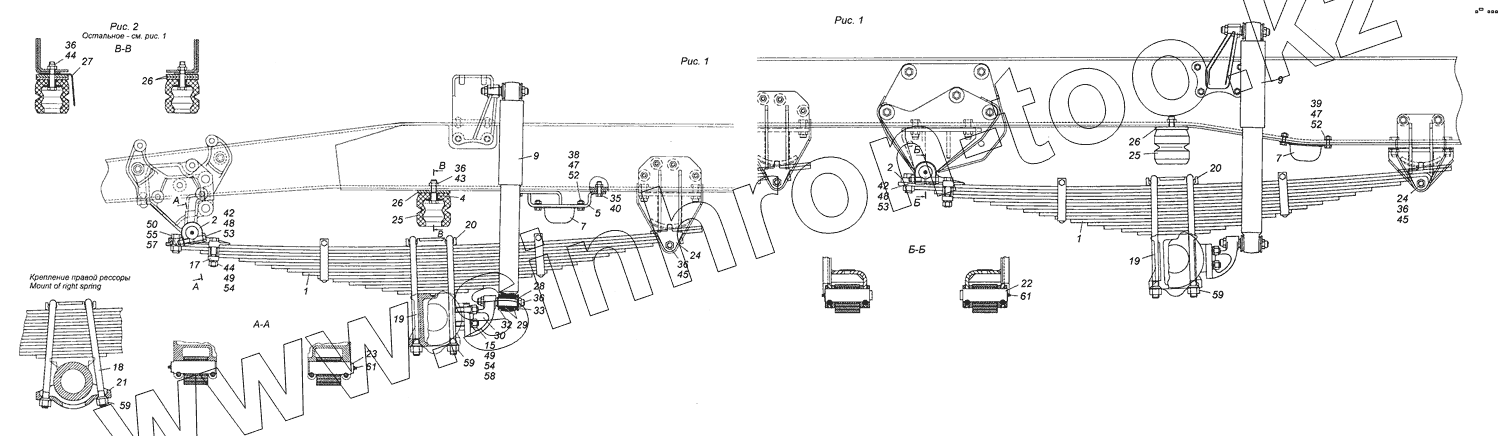 Каталог запасных частей к технике: Камский автозавод 6450 (8х8). 6350-2900001 Подвеска передняя