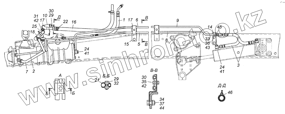 Каталог запасных частей к технике: Камский автозавод 6450 (8х8). 6350-3400018-02 Установка трубопроводов
