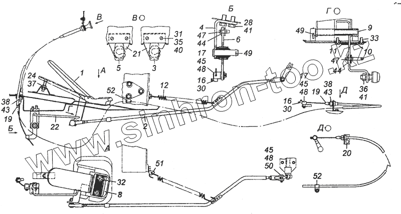 Каталог запасных частей к технике: Камский автозавод 6450 (8х8). 6520-1108003 Управление подачей топлива