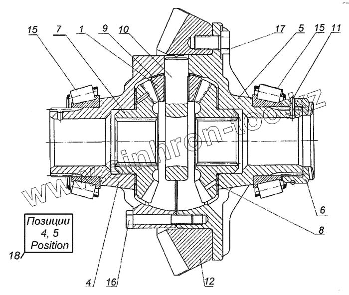 Каталог запасных частей к технике: Камский автозавод 6460. Дифференциал моста среднего