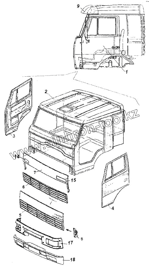 Каталог запасных частей к технике: Камский автозавод 6460. Кабина с дверями окрашенная