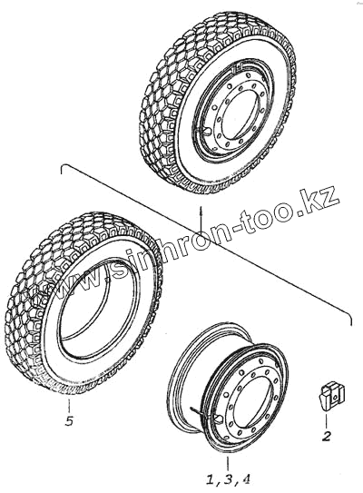 Каталог запасных частей к технике: Камский автозавод 6460. Колесо с шиной