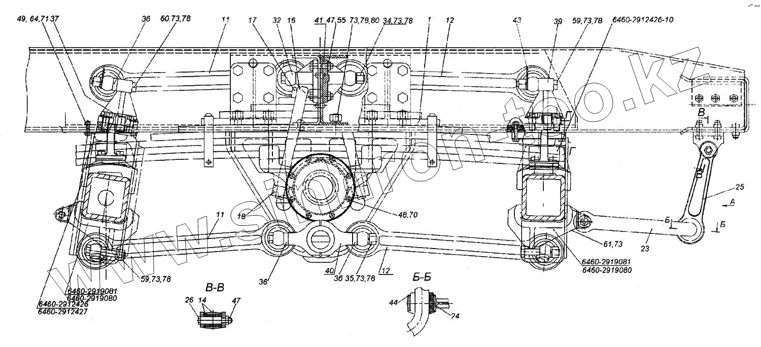 Каталог запасных частей к технике: Камский автозавод 6460. Подвеска задняя в сборе