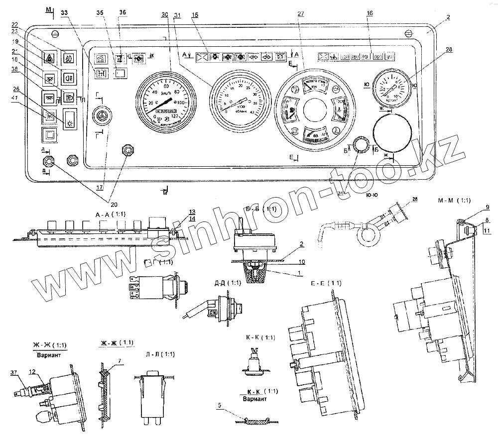 Каталог запасных частей к технике: Камский автозавод 6460. Щиток приборов
