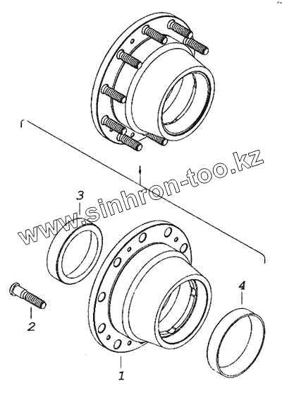 Каталог запасных частей к технике: Камский автозавод 6460. Ступица заднего колеса с болтами