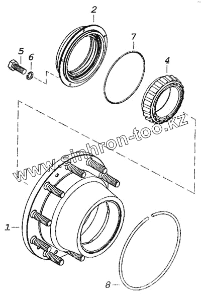 Каталог запасных частей к технике: Камский автозавод 6460. Ступица заднего колеса с манжетами