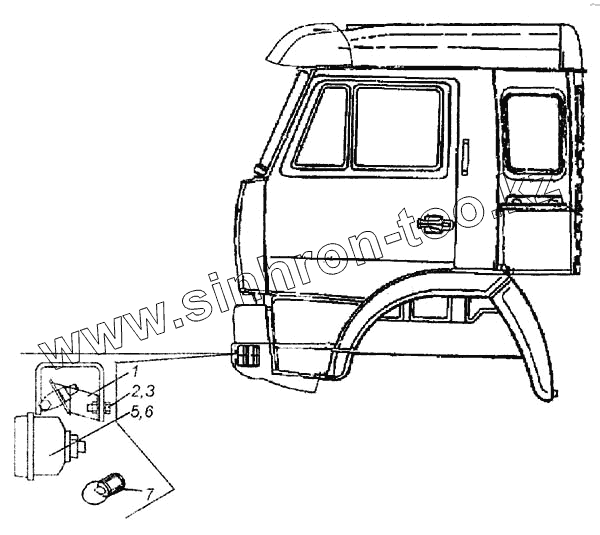 Каталог запасных частей к технике: Камский автозавод 6460. Установка фар дополнительных и противотуманных