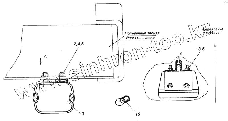 Каталог запасных частей к технике: Камский автозавод 6460. Установка фонаря заднего хода