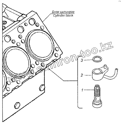 Каталог запасных частей к технике: Камский автозавод 6460. Установка форсунки охлаждения поршня