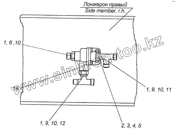 Каталог запасных частей к технике: Камский автозавод 6460. Установка клапана двухмагистрального