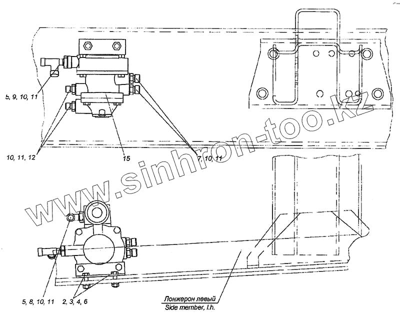 Каталог запасных частей к технике: Камский автозавод 6460. Установка клапана управления тормозами прицепа