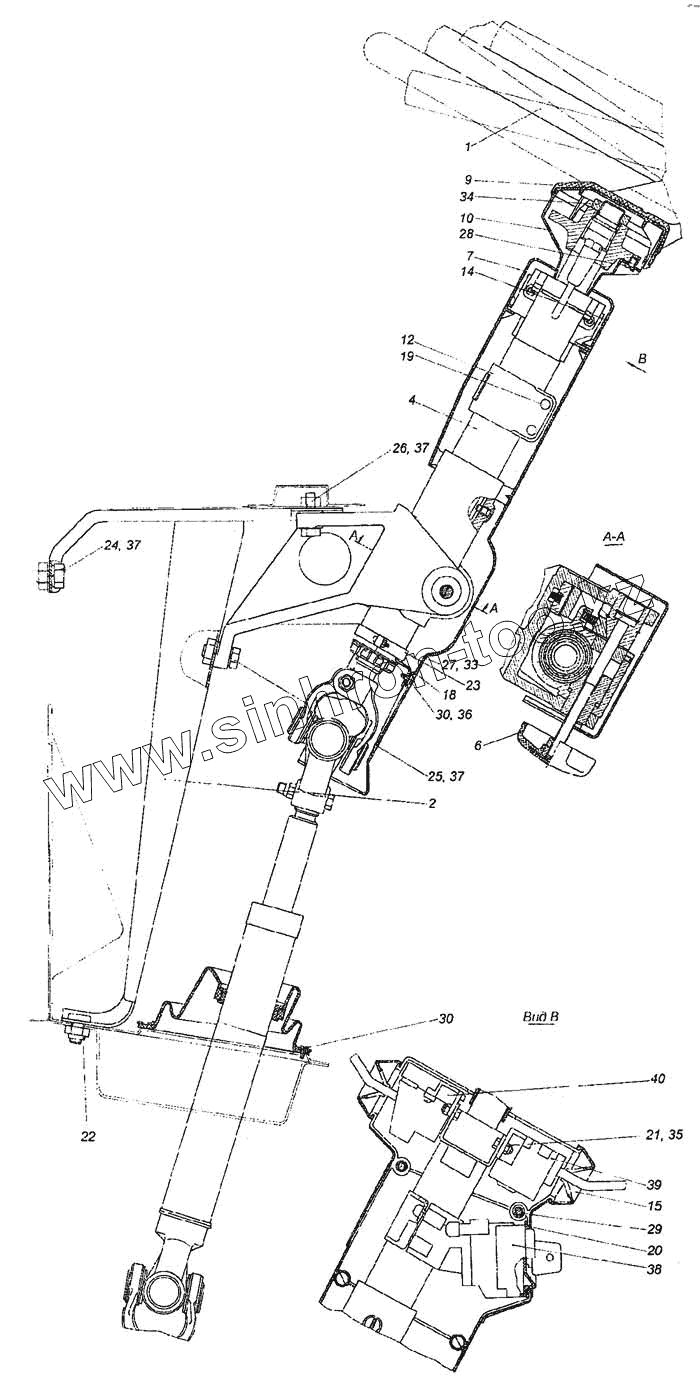 Каталог запасных частей к технике: Камский автозавод 6460. Установка колонки рулевого управления