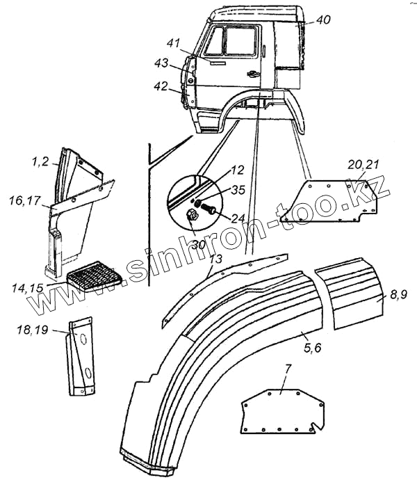 Каталог запасных частей к технике: Камский автозавод 6460. Установка оперения кабины