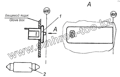 Каталог запасных частей к технике: Камский автозавод 6460. Установка плафона освещения вещевого ящика