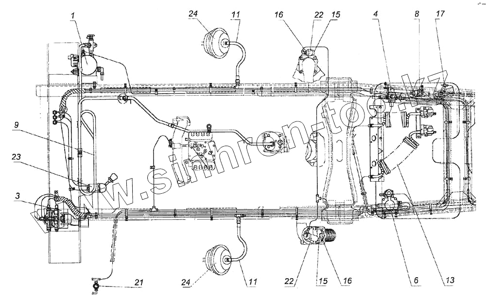 Каталог запасных частей к технике: Камский автозавод 6460. Установка пневмотормозов