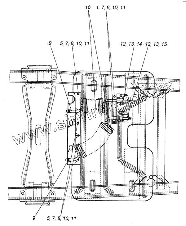 Каталог запасных частей к технике: Камский автозавод 6460. Установка пневмовыводов к полуприцепу