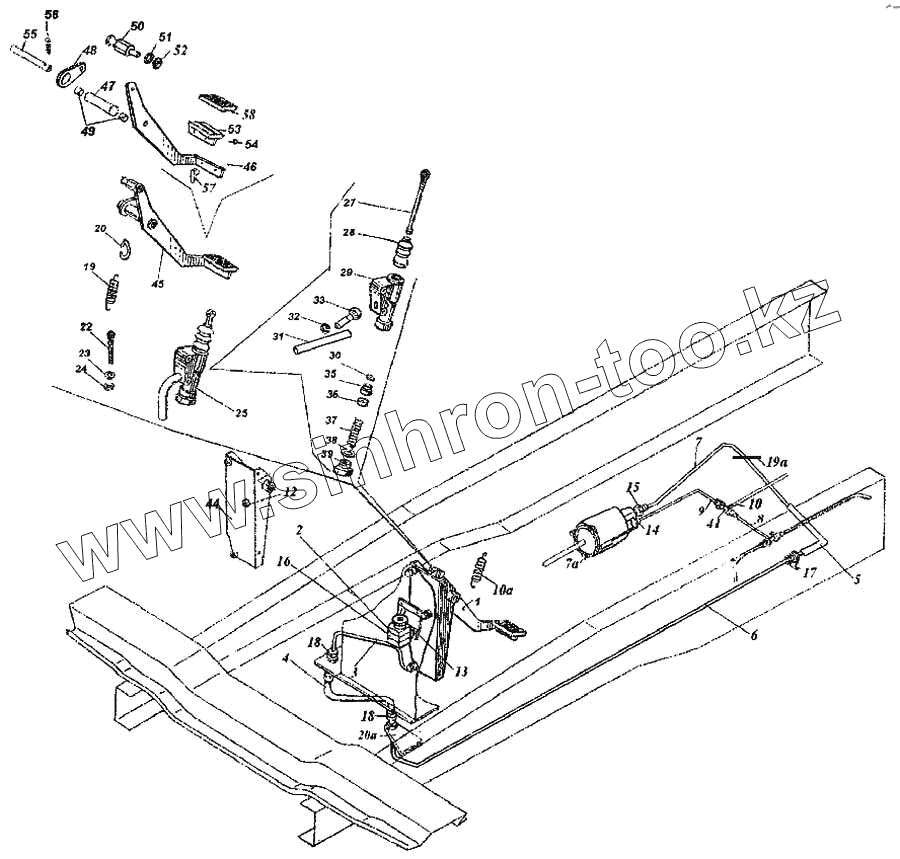 Каталог запасных частей к технике: Камский автозавод 6460. Установка подали и привода выключения сцепления