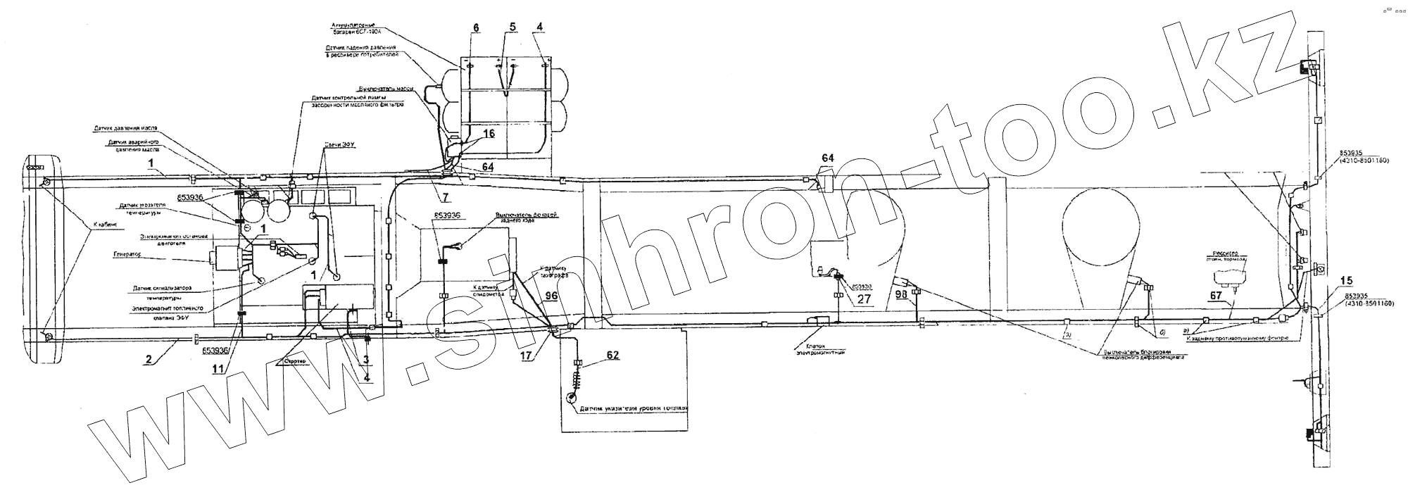 Каталог запасных частей к технике: Камский автозавод 6460. Установка проводов на шасси