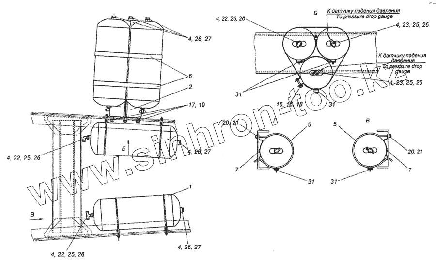 Каталог запасных частей к технике: Камский автозавод 6460. Установка ресиверов