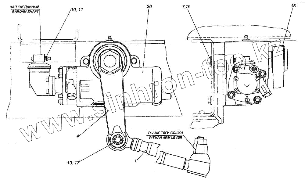 Каталог запасных частей к технике: Камский автозавод 6460. Установка рулевого механизма