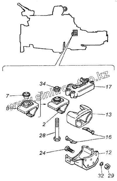 Каталог запасных частей к технике: Камский автозавод 6460. Установка силового агрегата (опора задняя)