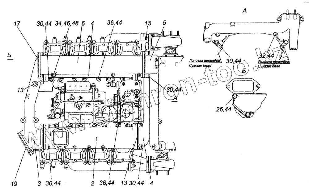 Каталог запасных частей к технике: Камский автозавод 6460. Установка системы впуска