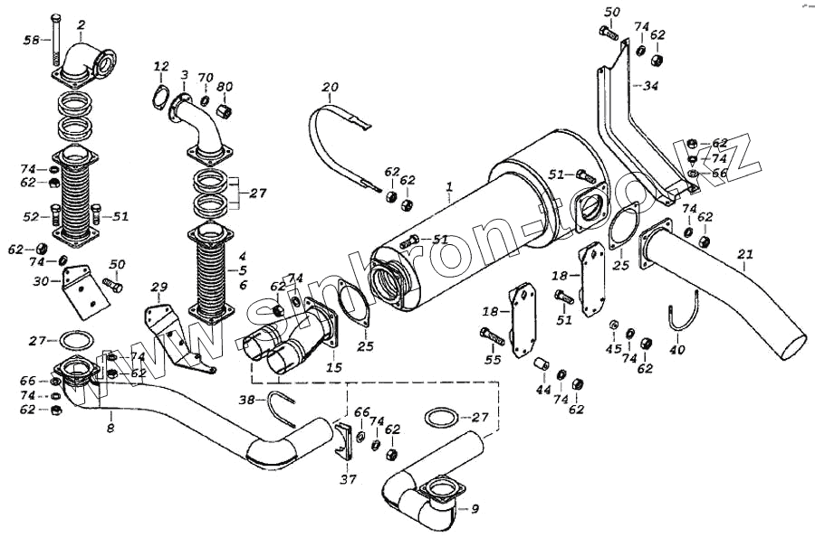 Каталог запасных частей к технике: Камский автозавод 6460. Установка системы выпуска