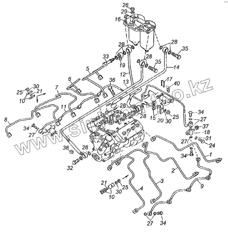 Каталог запасных частей к технике: Камский автозавод 6460. Установка топливопроводов
