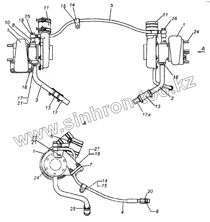 Каталог запасных частей к технике: Камский автозавод 6460. Установка турбокомпрессора