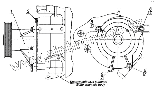 Каталог запасных частей к технике: Камский автозавод 6460. Установка водяного насоса