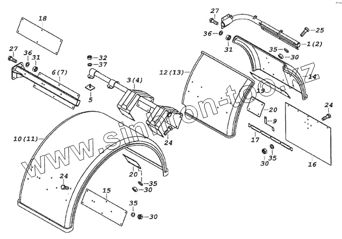 Каталог запасных частей к технике: Камский автозавод 6460. Установка задних крыльев