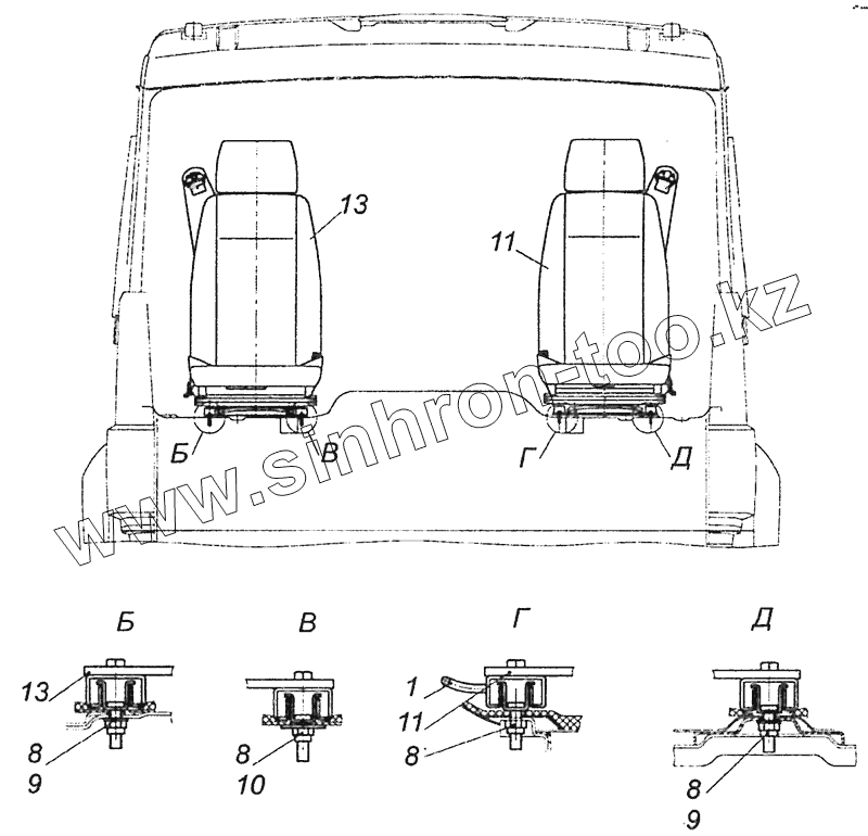 Каталог запасных частей к технике: Камский автозавод 6460 (Евро 3, 4). 6460-5000120 Установка сидений