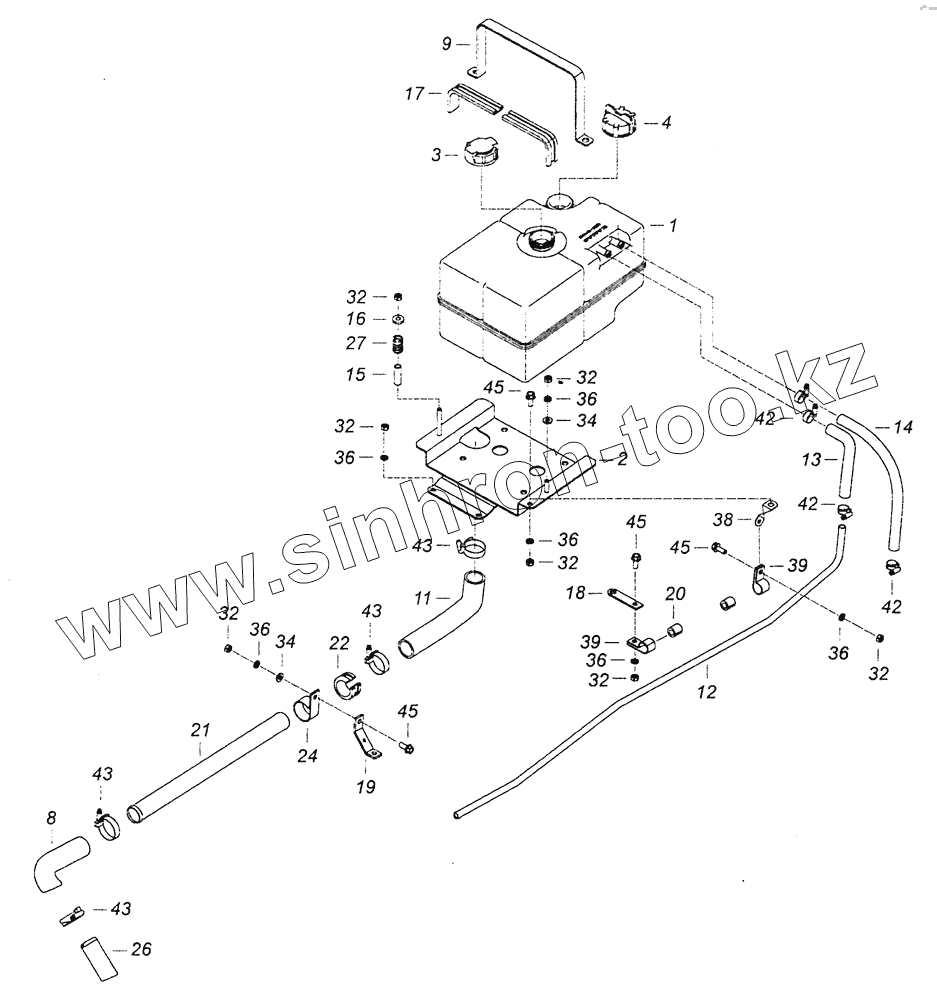 Каталог запасных частей к технике: Камский автозавод 6460 (Евро 4). 5460-1311005 Установка бачка расширительного