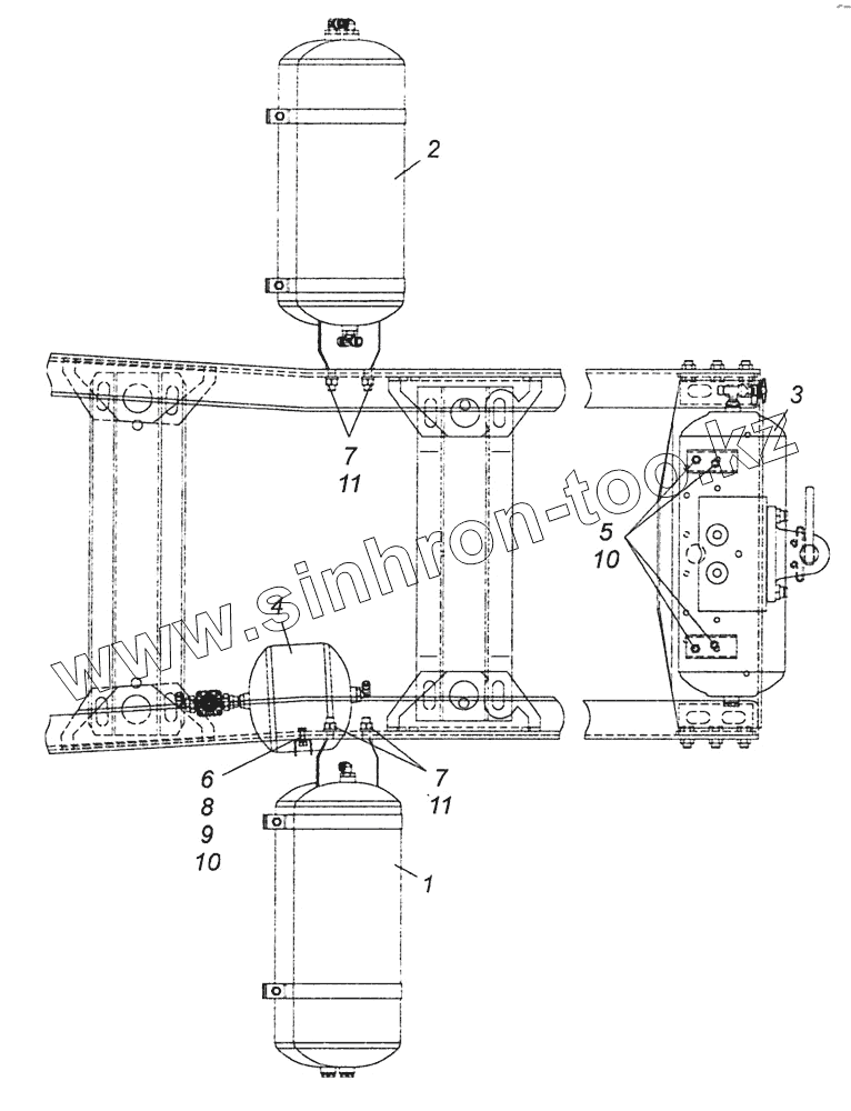Каталог запасных частей к технике: Камский автозавод 6460 (Евро 4). 6460-3500013-07 Установка ресиверов
